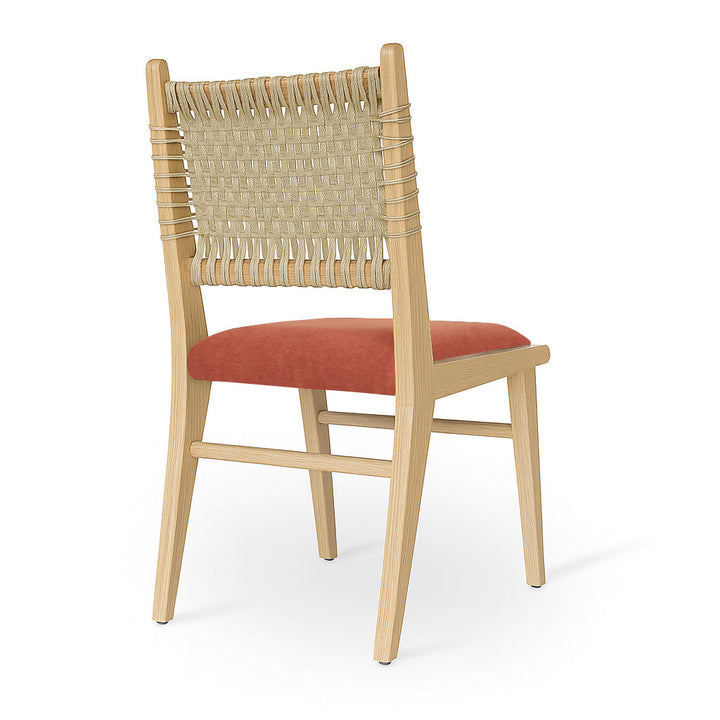 Asandi - Ash,Oak,Beech Dining Chair Brown Weaving, Red Upholstered