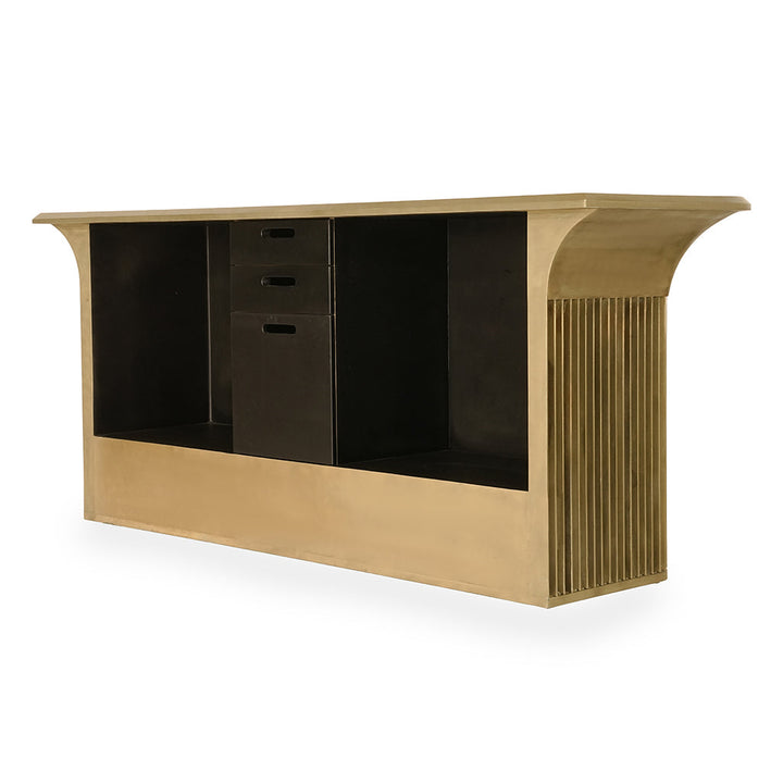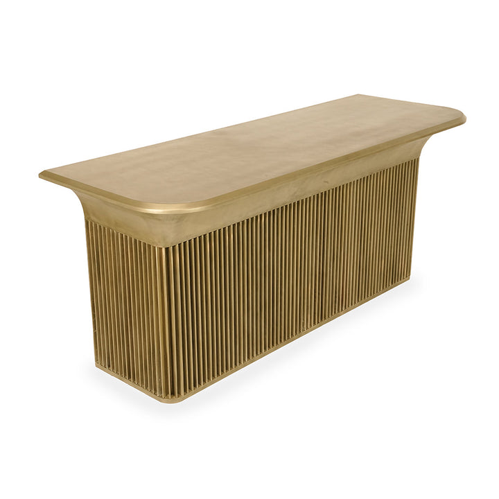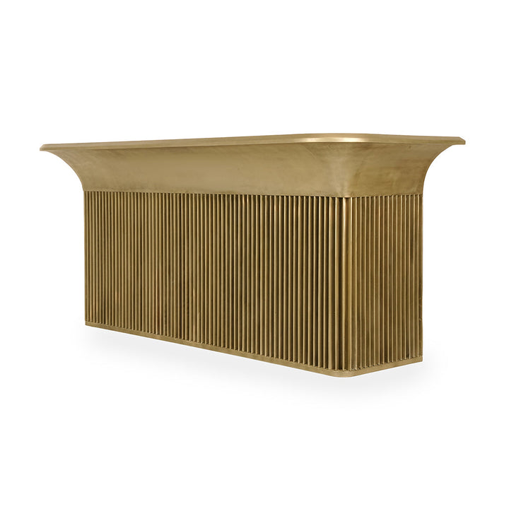 With its brushed golden finish and delicately fluted vertical base, the design radiates opulence while maintaining a refined modernity.