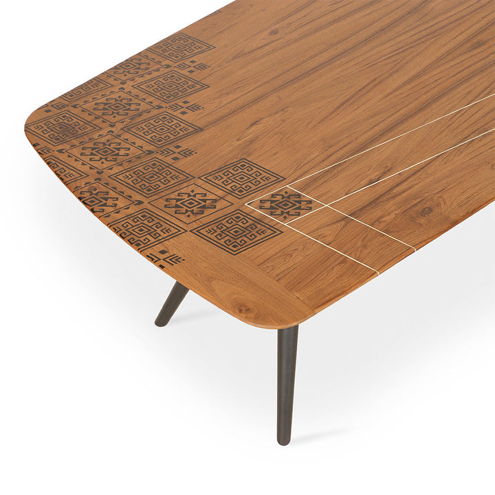 Fusi - Eight Seater Teak Dining Table, Brass Inlay on Top