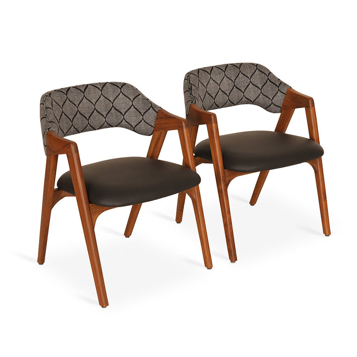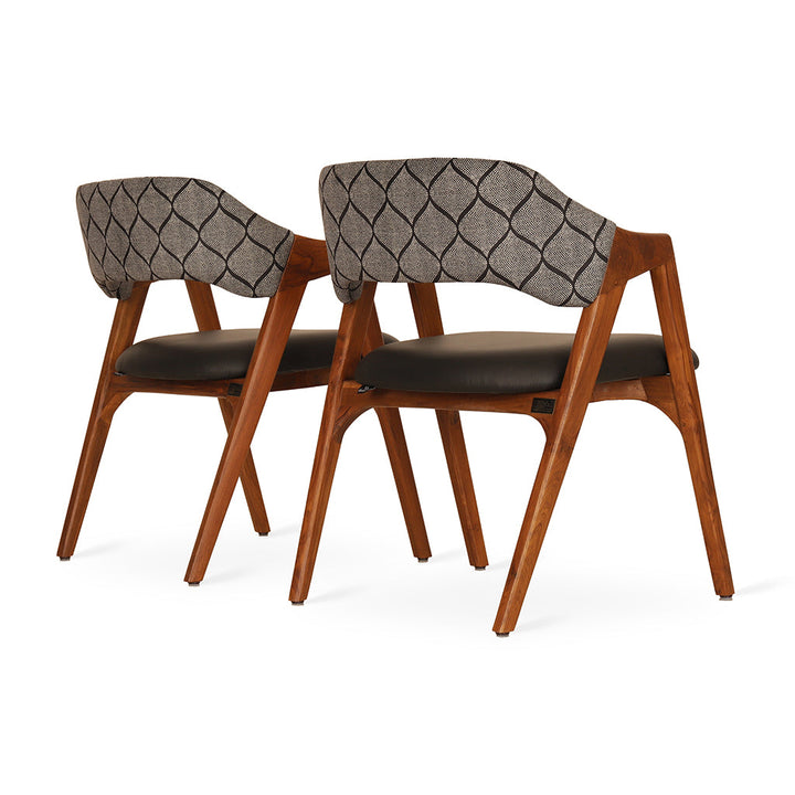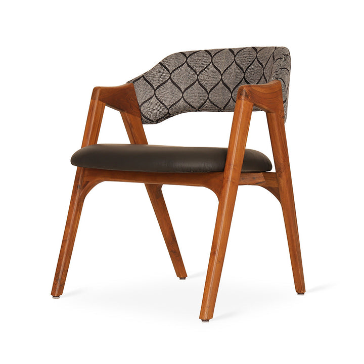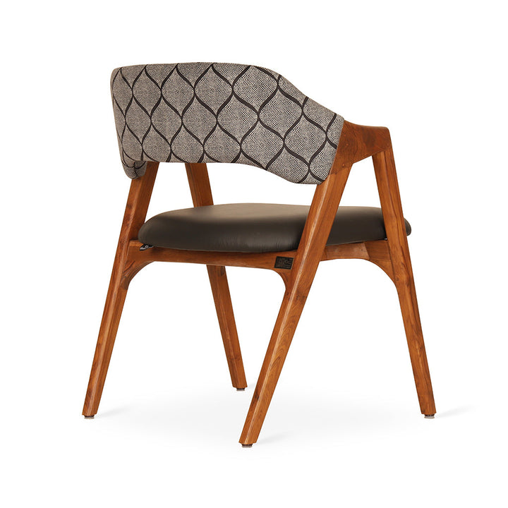 Ikkita - Teak Dining Chair, Grey Printed Fabric & Black Leather