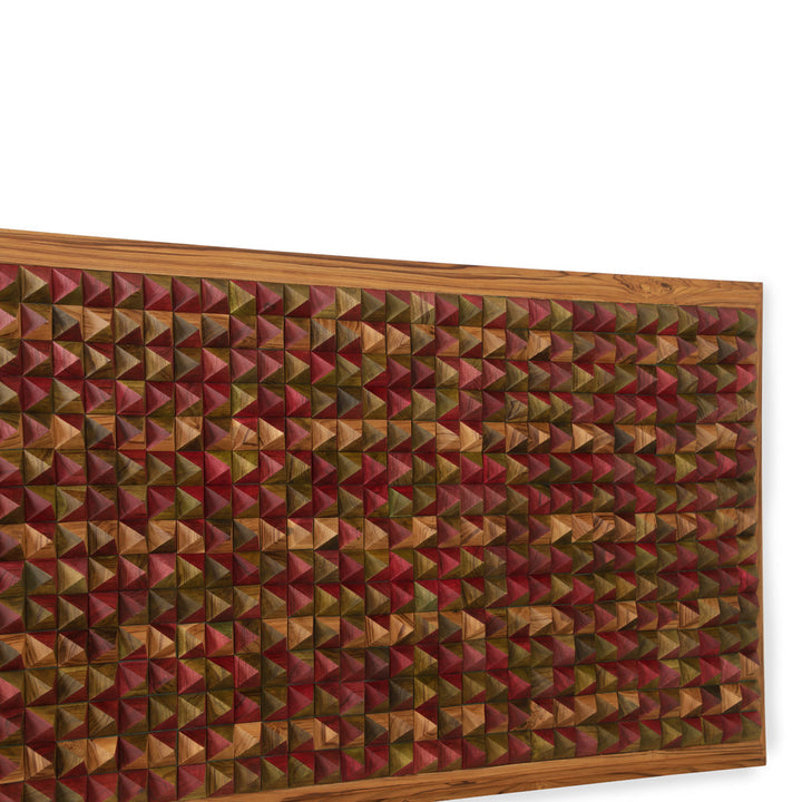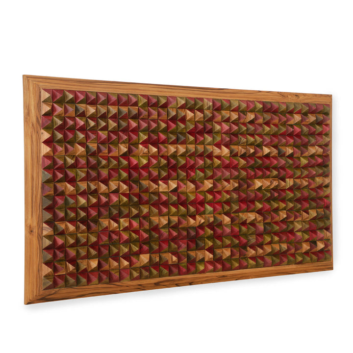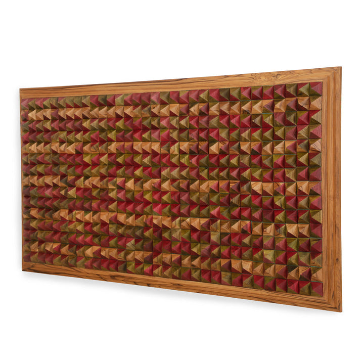 - This striking wall frame is a testament to intricate craftsmanship, composed of countless conical teakwood pieces that come together to form a mesmerizing 3D mosaic.