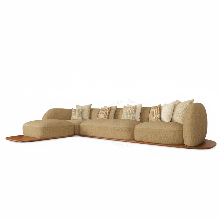 Upholstered in plush fabric, each cushion offers generous comfort while maintaining a refined, low-profile aesthetic.