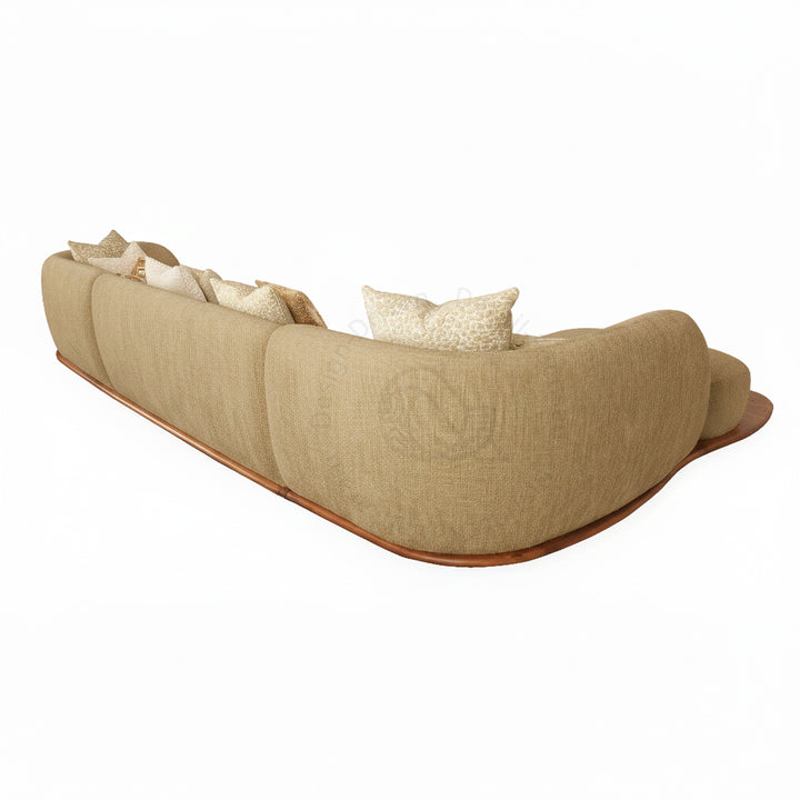 Inspired by the fluidity and grace of water, Mizu is a curvaceous teakwood sofa that embodies seamless form and understated luxury.