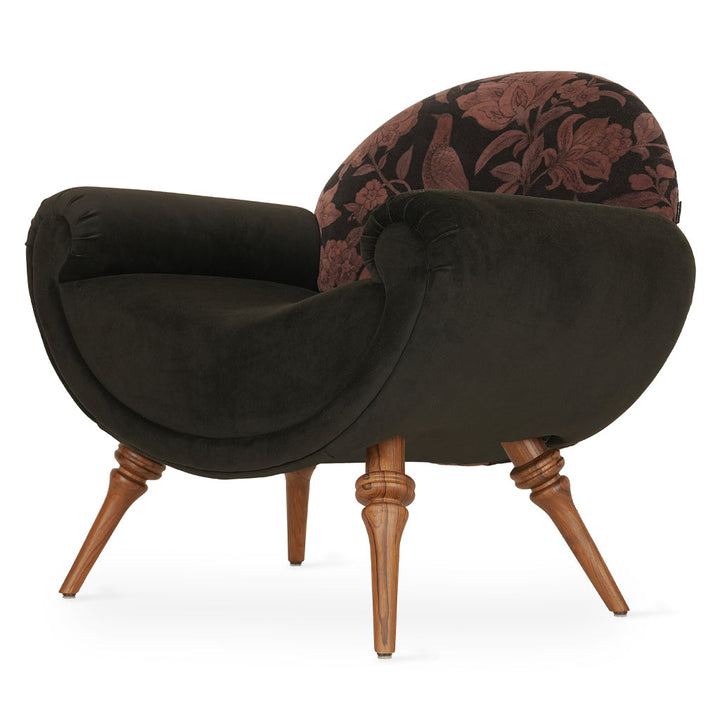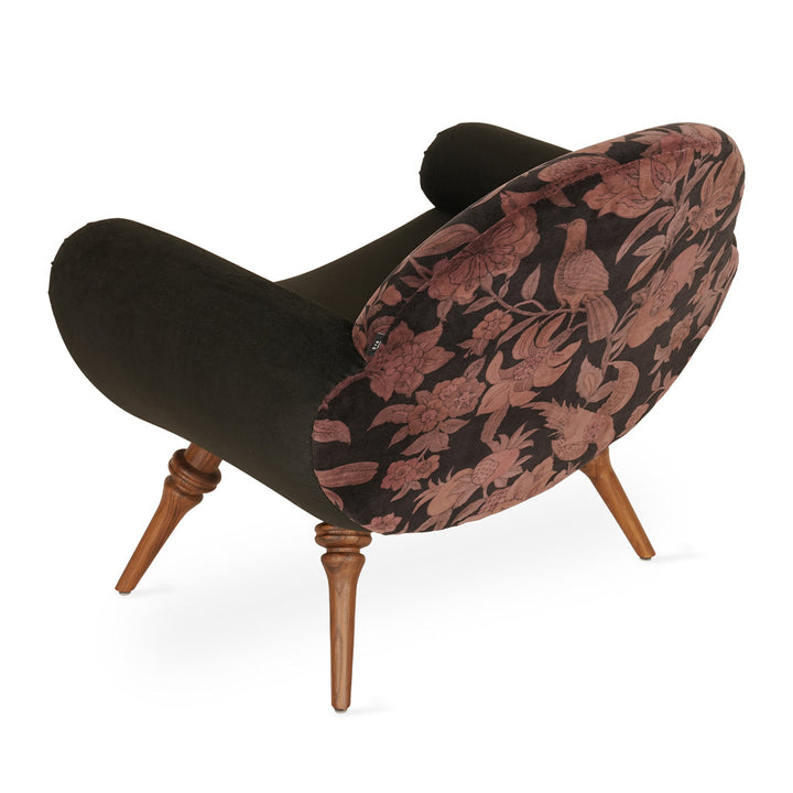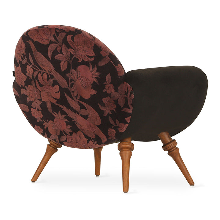 Puoli - Teak Lounge Chair, Charcoal Black, Printed fabric