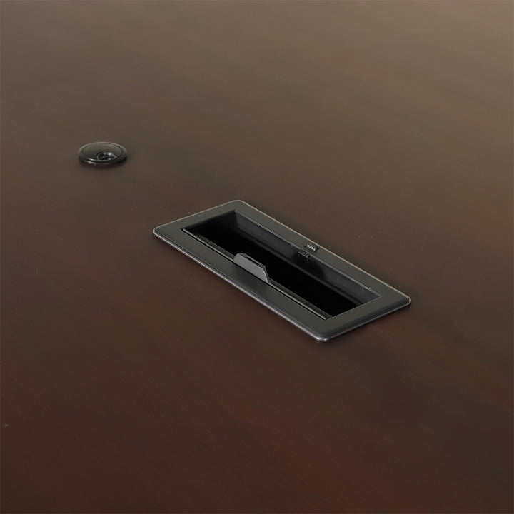 Integrated cut-outs ensure discreet cable management, making it ideal for today’s tech-enabled boardrooms.