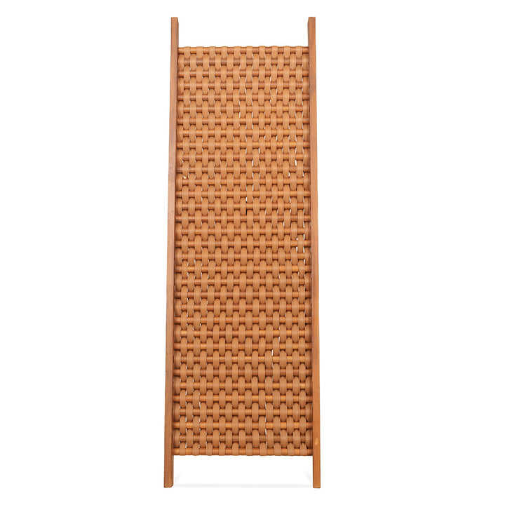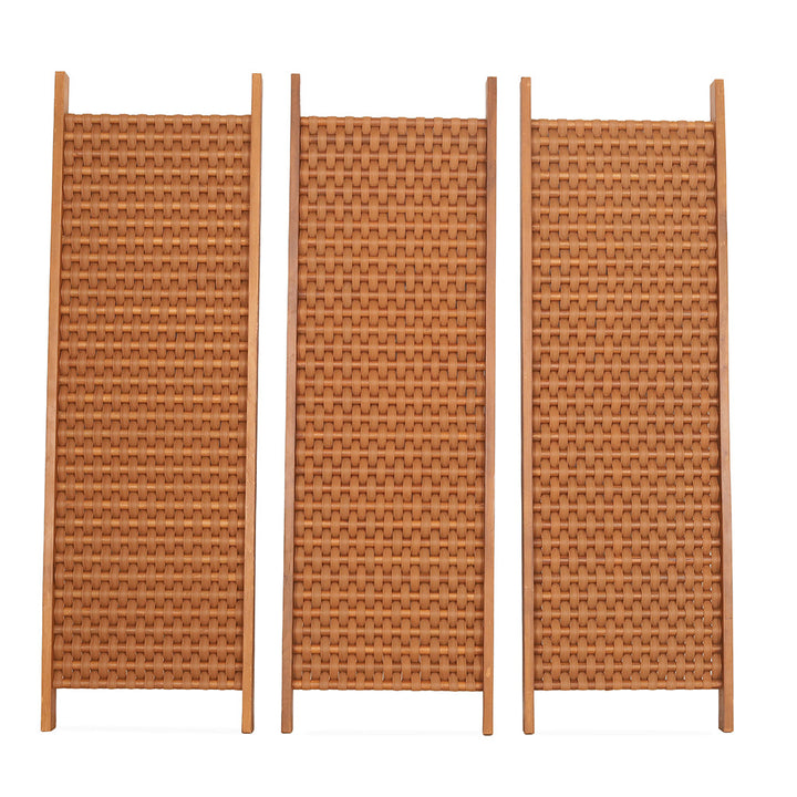 The rhythmic interlacing creates a rich tactile texture, offering both visual warmth and acoustic privacy.